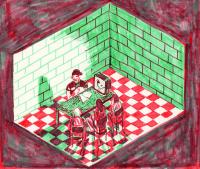 De bijhorende tekening is deze keer van Thijs Desmet.